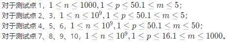 #6059. 「2017 山东一轮集训 Day1」Sum 内存限制:256 MiB 时间限制:1500 ms 题目描述 求有多少 n 位十进制数是 p pp 的倍数且每位之和小于等于 mi(mi=0,1,2,…,m−1,m) ,允许前导 0...